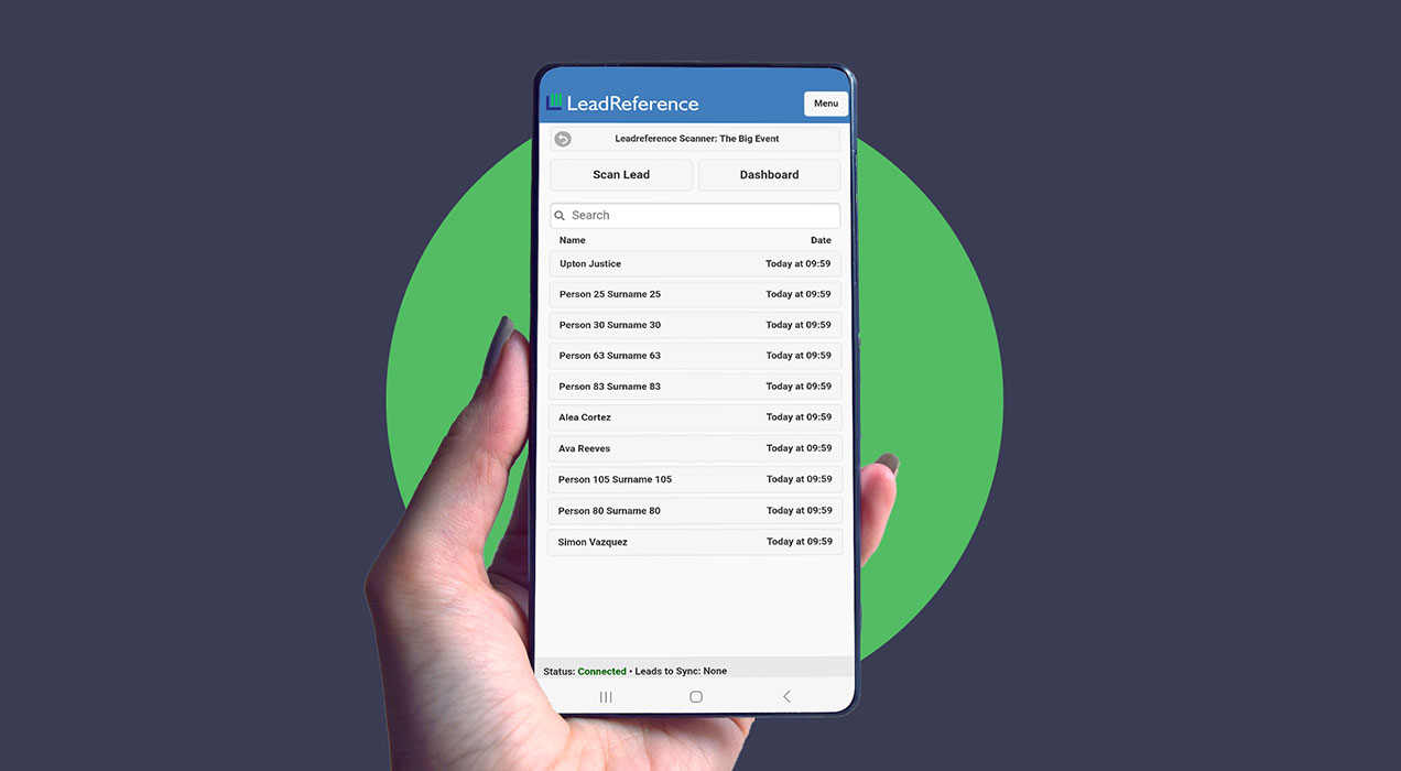 Exhibition data is easily exported from LeadReference each day or quicker if necessary, so speedy follow-up for red-hot leads can start immediately. After all, who wants to wait until the leads get typed up into a spreadsheet?